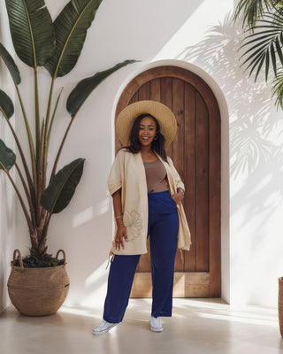 Safari by Vivo Zehra Embroidered Linen Kimono - Beige