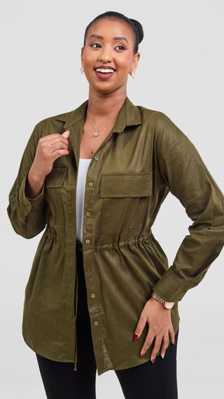 Safari Kamari Long Sleeve Drawstring Shacket - Hunters Green