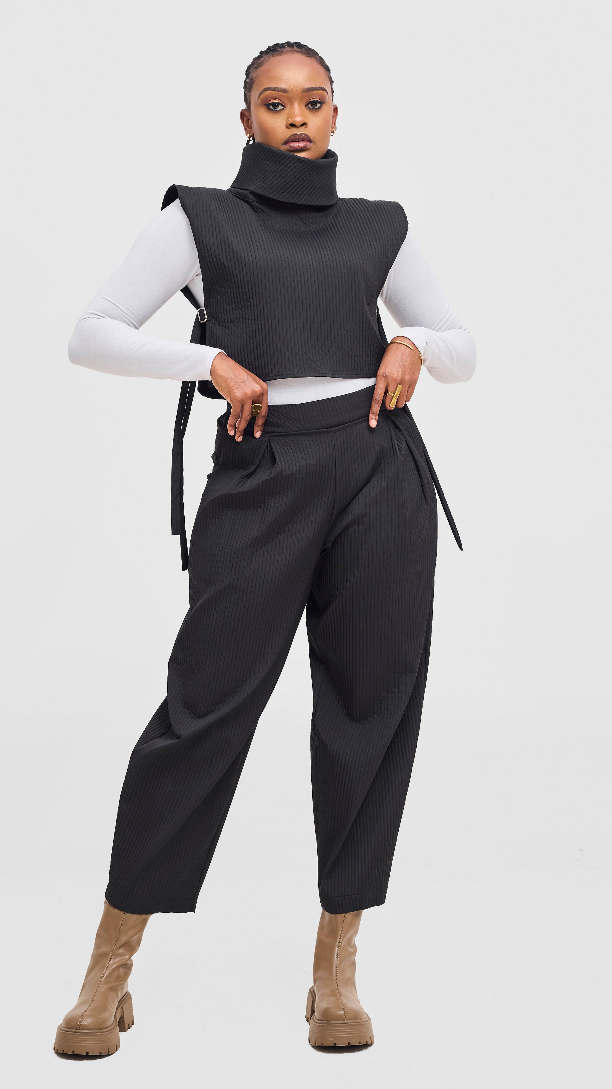 Discover the Shiv Shikie X Safari Barrel Pants in black, expertly crafted for both style and versatility. These pants offer a modern silhouette with a comfortable fit, making them ideal for a range of occasions—from casual outings to adventurous escapes. The black tone adds a timeless, earthy touch that pairs effortlessly with various wardrobe staples. Elevate your everyday look with these thoughtfully designed barrel pants that combine fashion and function seamlessly.