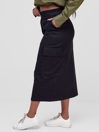 Safari Kamari Front Slit Midi Skirt - Black