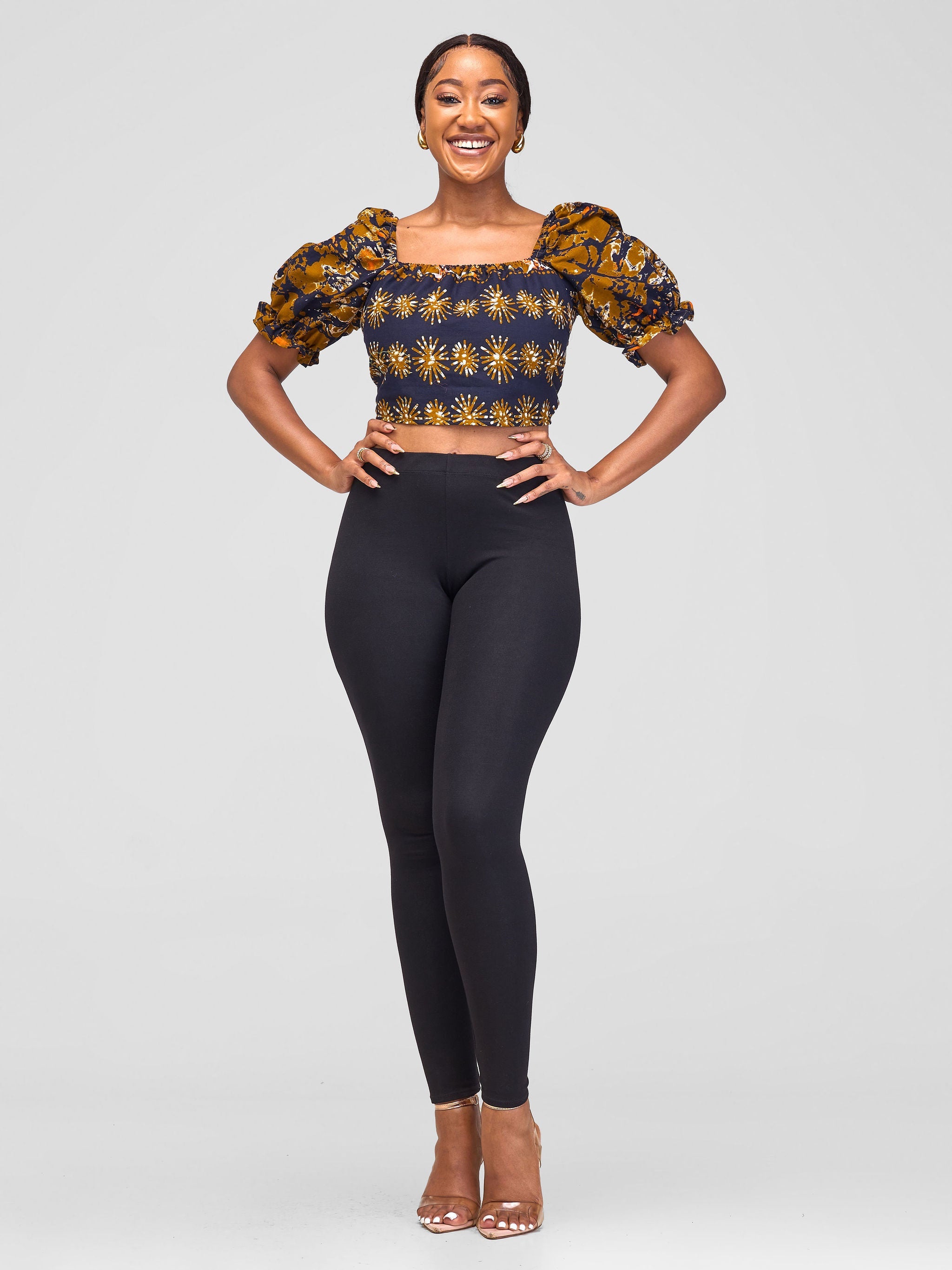 Cropped top with puff sleeves and double tie details at the back