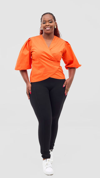 Safari Anga Puffy Short Sleeve Tie Top - Navy Blue / Orange Ankara