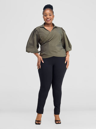 Safari Mali 3/4 Bishop Sleeve Tie Top - Light Grey