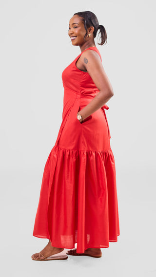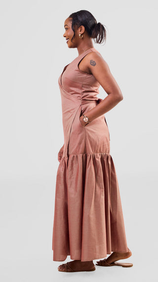 Safari Nazari Three Tiered Maxi Dress - Mustard / Brown Polka Dot Print