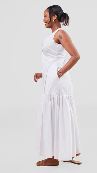 Safari Nazari Three Tiered Maxi Dress - White / Black Polka Dot Print