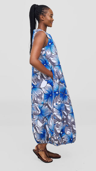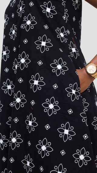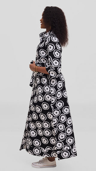 Safari by Vivo Zehra 3/4 Sleeve Kitenge Maxi Dress - Black / White Ana Print