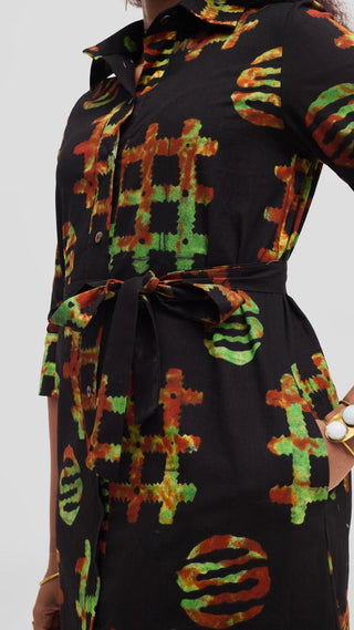 Safari by Vivo Zehra 3/4 Sleeve Kitenge Maxi Dress - Black / Olive Vema Print