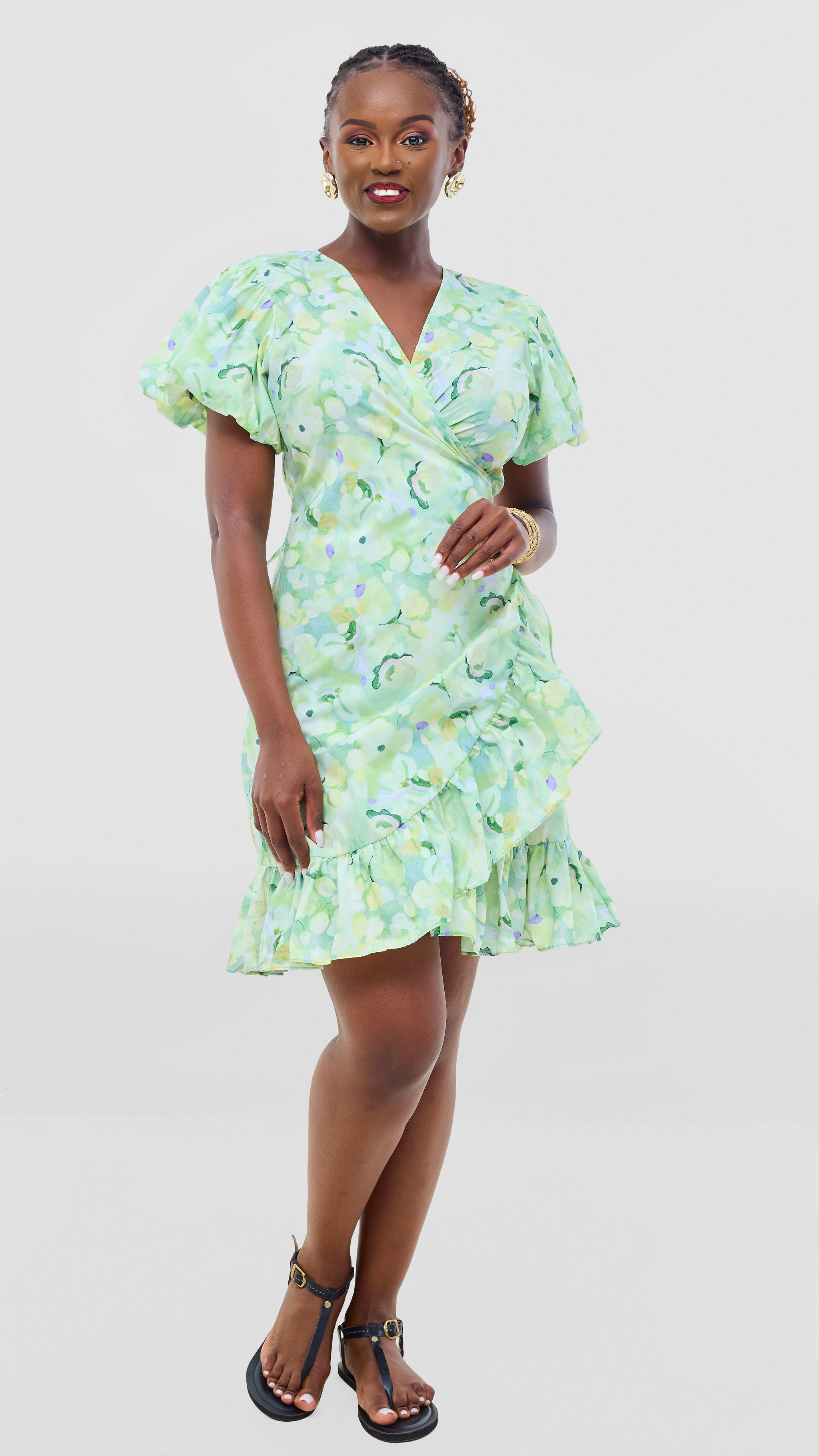 Embrace relaxed sophistication with this cotton wrap dress that adapts to your lifestyle. Constructed from soft, breathable cotton fabric, it offers all-day comfort without compromising on style. The knee-length cut paired with charming ruffles creates a feminine silhouette that feels both modern and timeless. The vibrant orange and green print brings warmth and personality to your wardrobe. Dress it down with casual sandals for weekend errands, or elevate it with heels for evening plans. This is the one piece that bridges your casual and dressy moments, delivering effortless elegance whenever you need it.