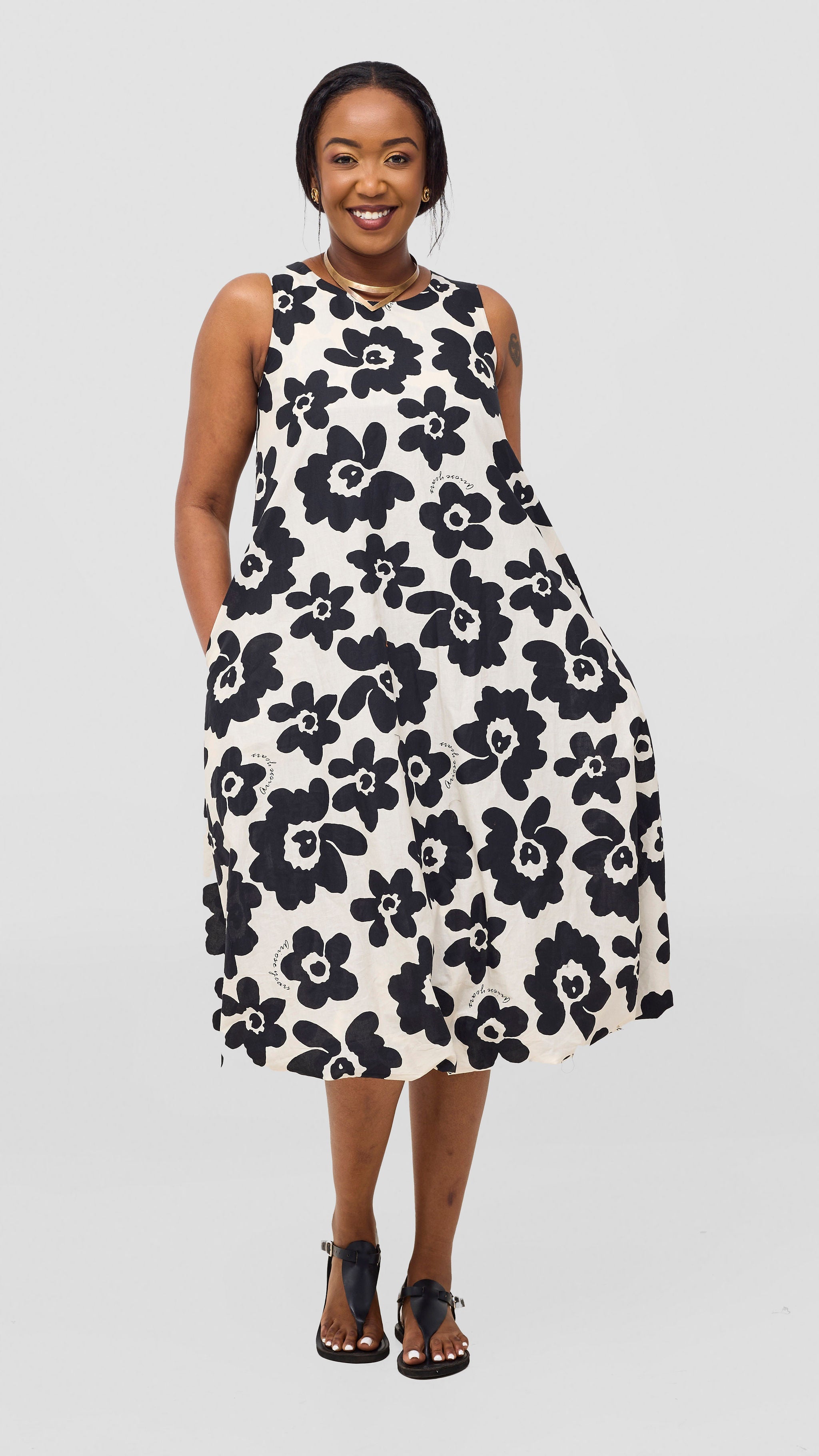 Safari Nazari Bubble Midi Dress - Beige / Black Print