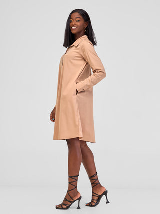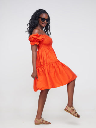 Safari Mara Shirred Bishop Sleeve Dress - Orange