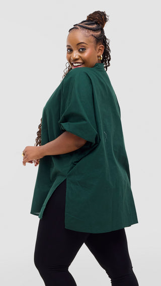 Safari by Vivo Zehra Extra Wide Linen Shirt - Dark Green