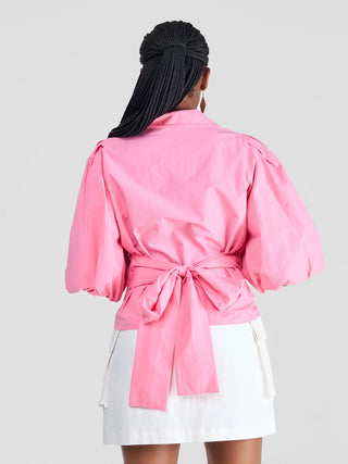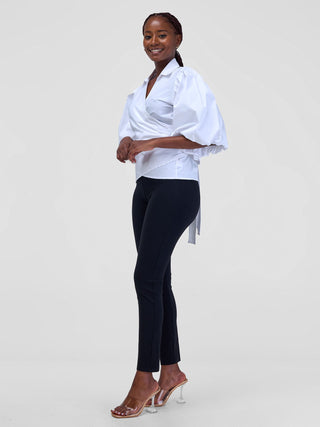 Safari Mali 3/4 Bishop Sleeve Tie Top - White