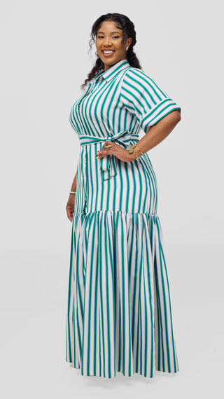 Safari Nazari Maxi Shirt Dress - Green / Cream Stripes