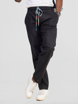 Safari Njano Men's Easy Fit Kitenge Pants - Black / Brown Print