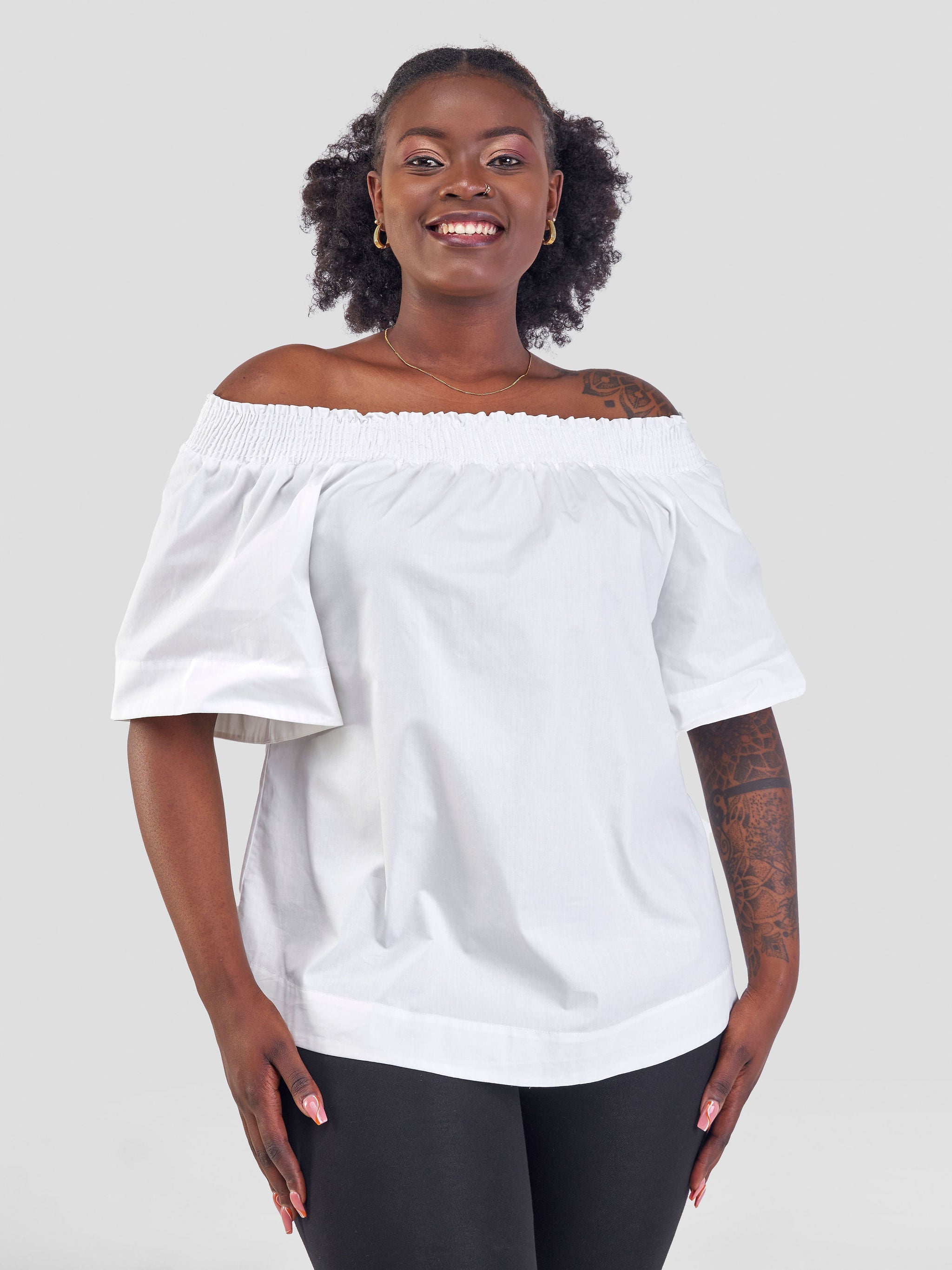 This off-shoulder top is a perfect blend of style and functionality, crafted with the safari spirit in mind. Its lightweight fabric keeps you comfortable and cool, allowing you to freely roam and embrace the untamed beauty around you. The off-shoulder design adds a touch of elegance and a hint of playfulness to your outfit, making you stand out effortlessly in the vast wilderness. Pair yours with our Zene cargo pants for a complete safari look.