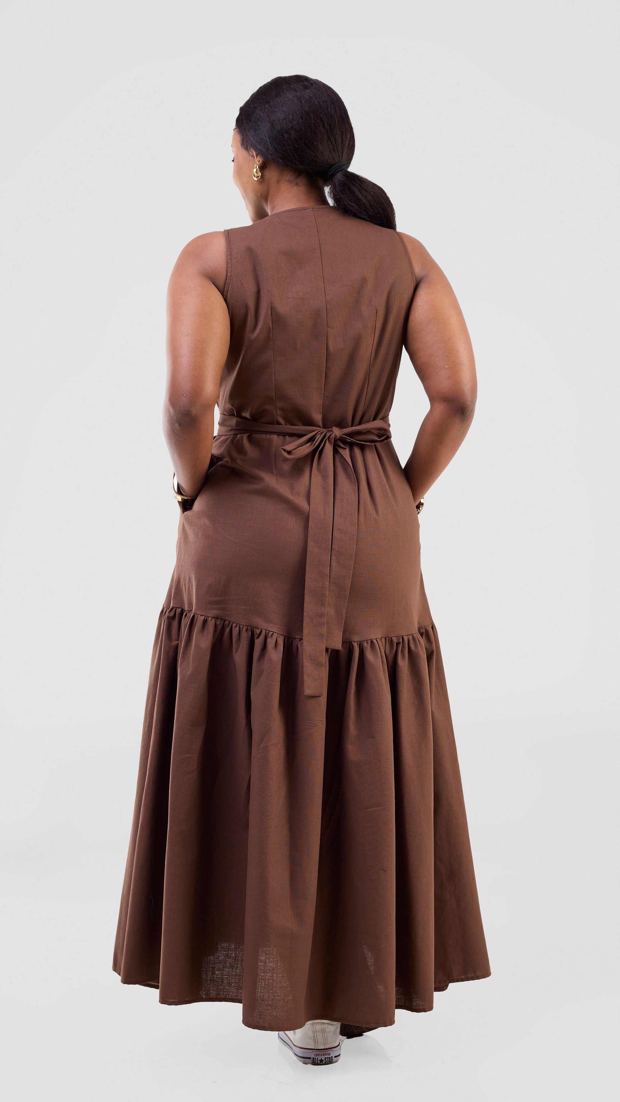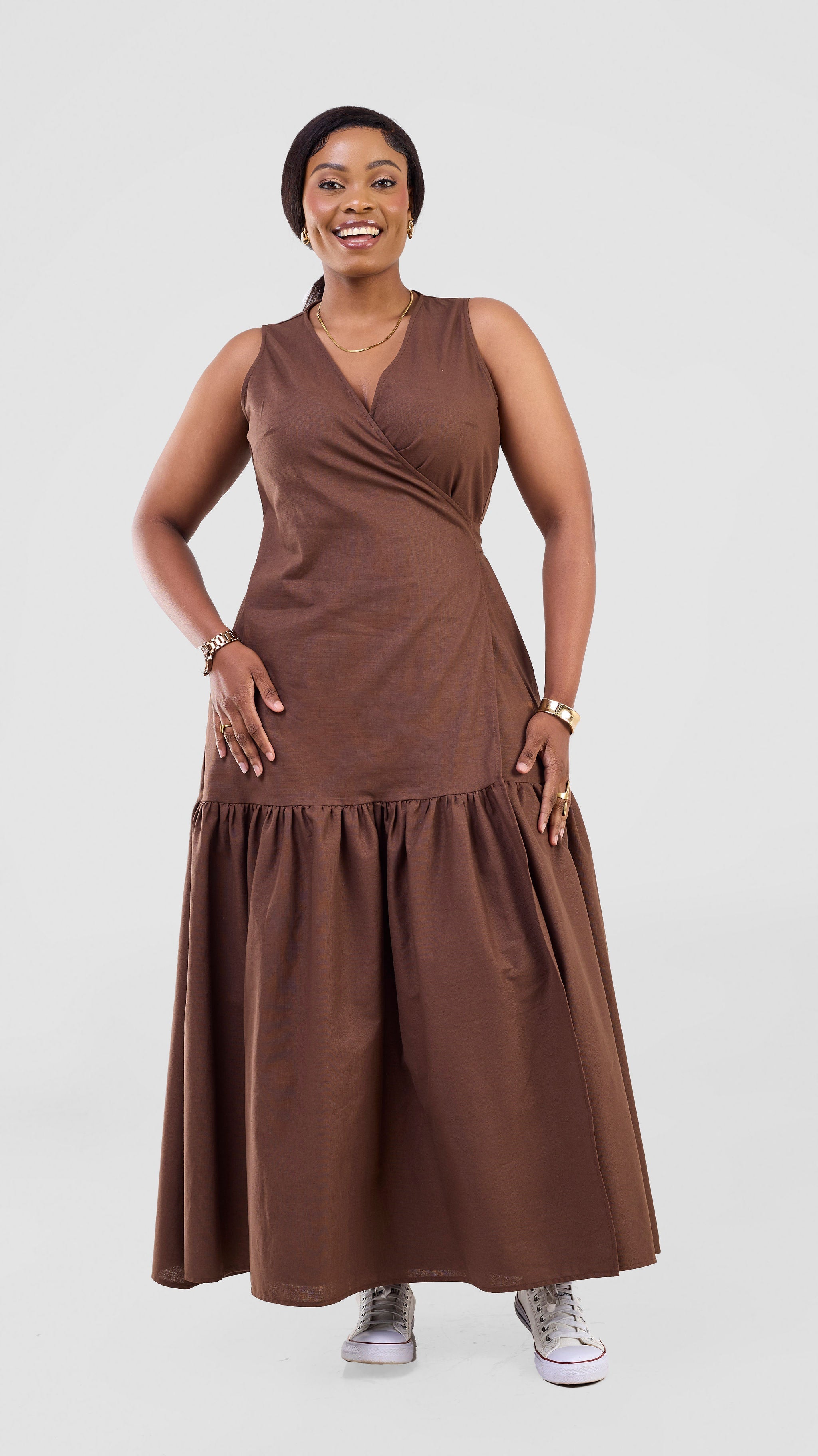 The Safari Naledi Gathered Panel Wrap Dress in chocolate offers a flattering silhouette with its gathered panels and adjustable wrap style. Designed for comfort and ease, it supports your confidence whether you're heading to a meeting or a casual outing. Its versatile design ensures you look polished while feeling comfortable all day long.
