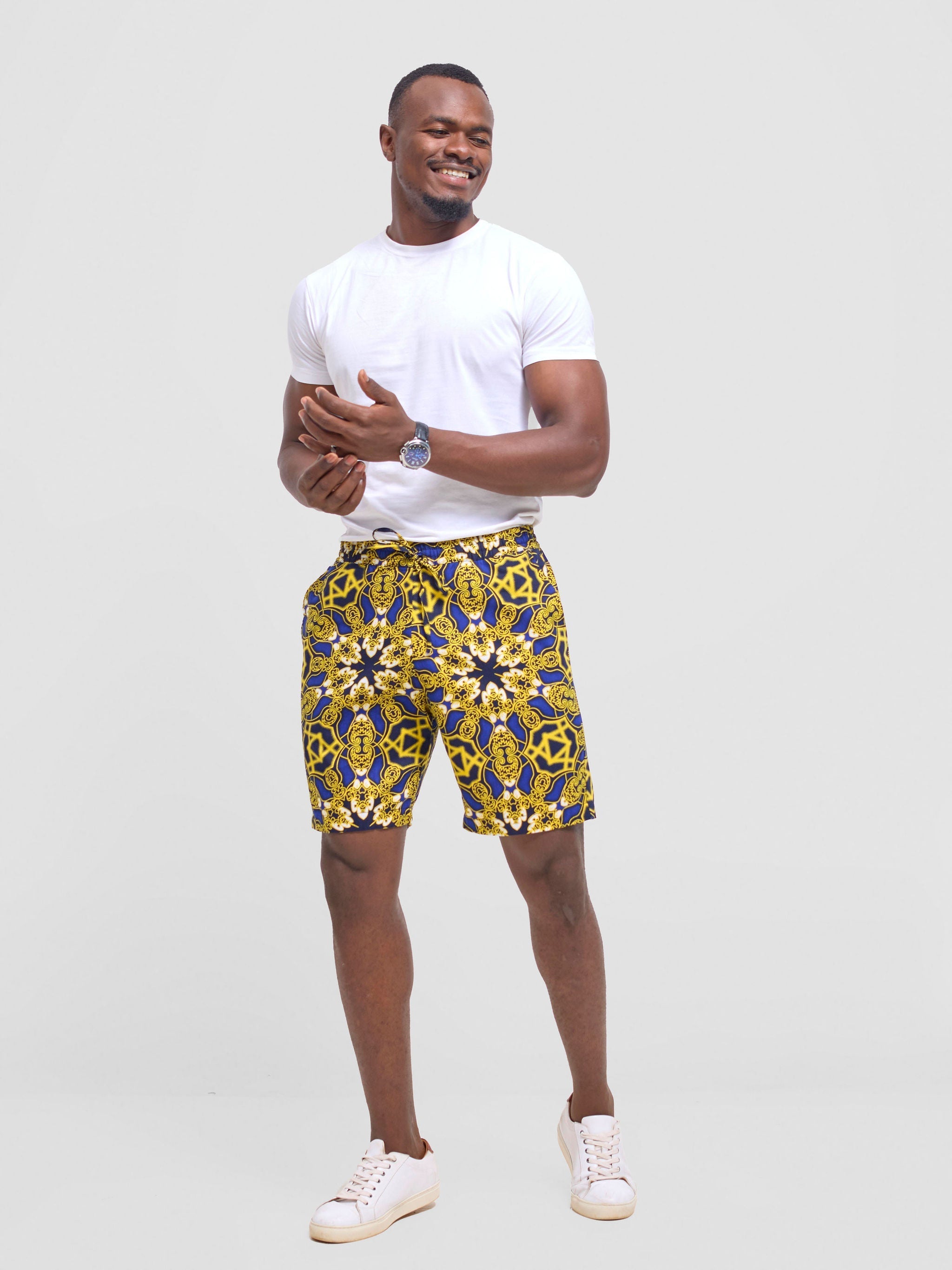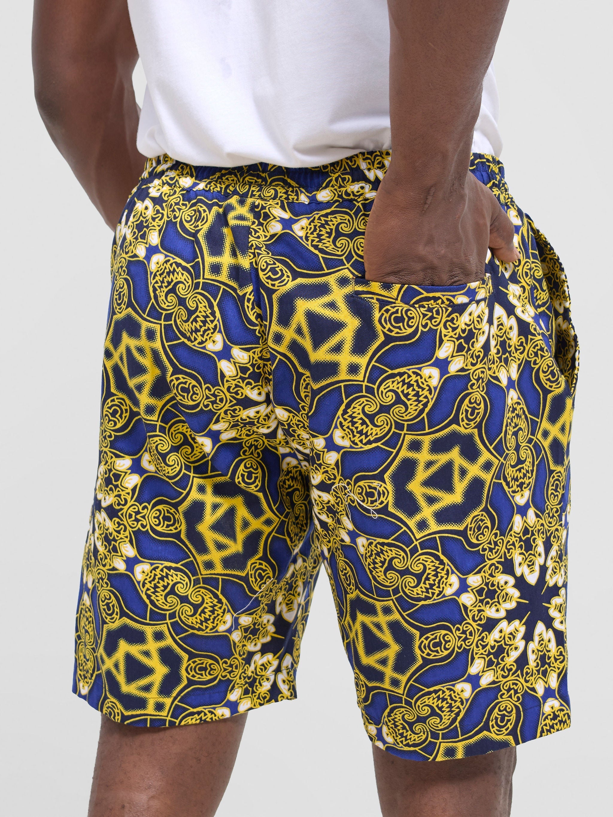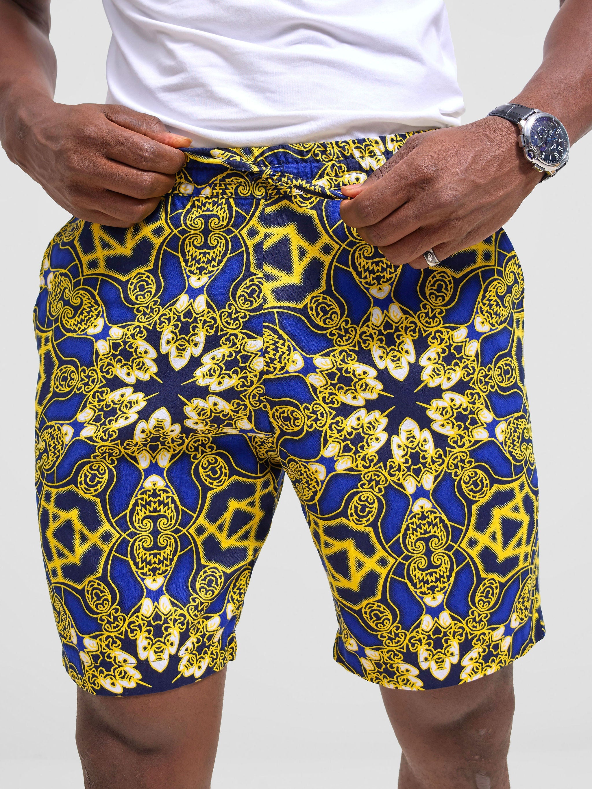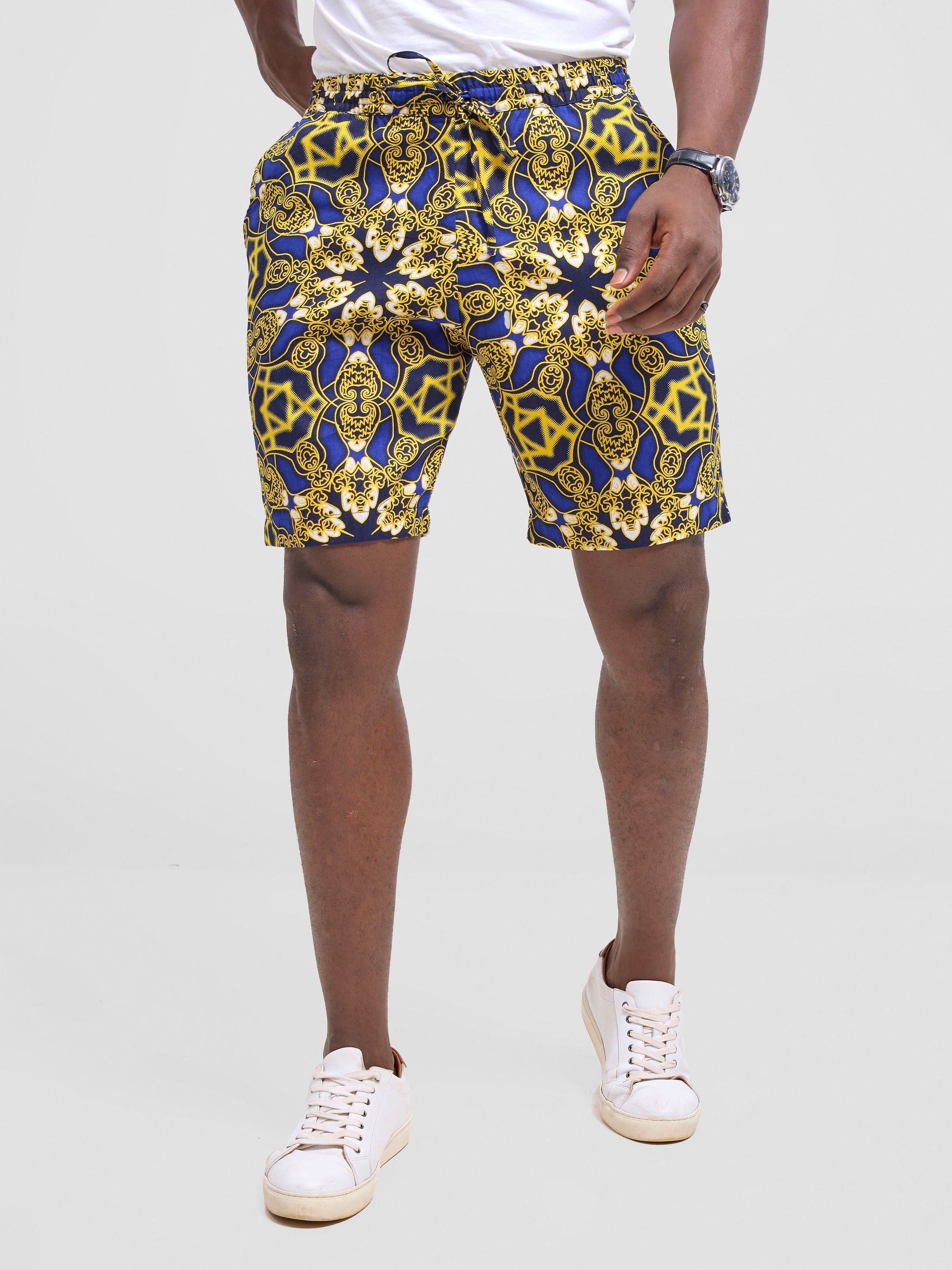 Introducing our men's drawstring shorts in vibrant kitenge prints. Embrace cultural flair and contemporary comfort with these stylish shorts, perfect for everyday wear and adding a bold statement to your wardrobe.