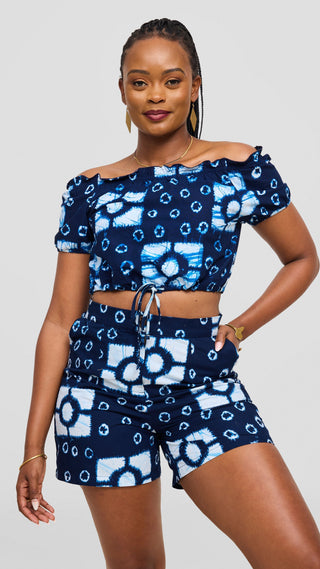 Safari Anga Wide Shorts - Navy Blue / Orange Ankara Print
