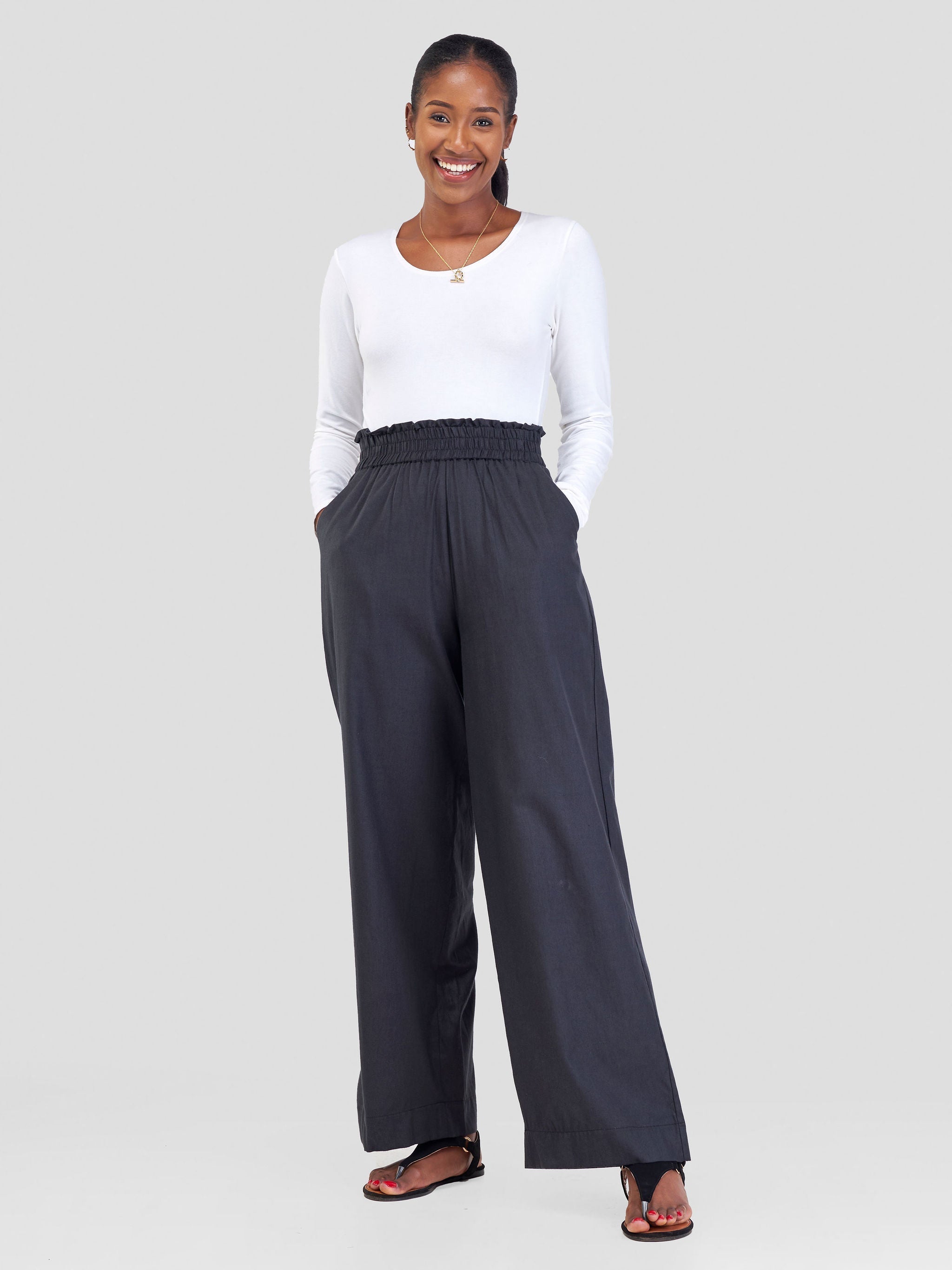These casual pants are designed to provide both comfort and style. The wide leg silhouette adds a touch of effortless elegance while the elasticated waistband ensures a snug and flexible fit, allowing you to move with ease throughout the day.