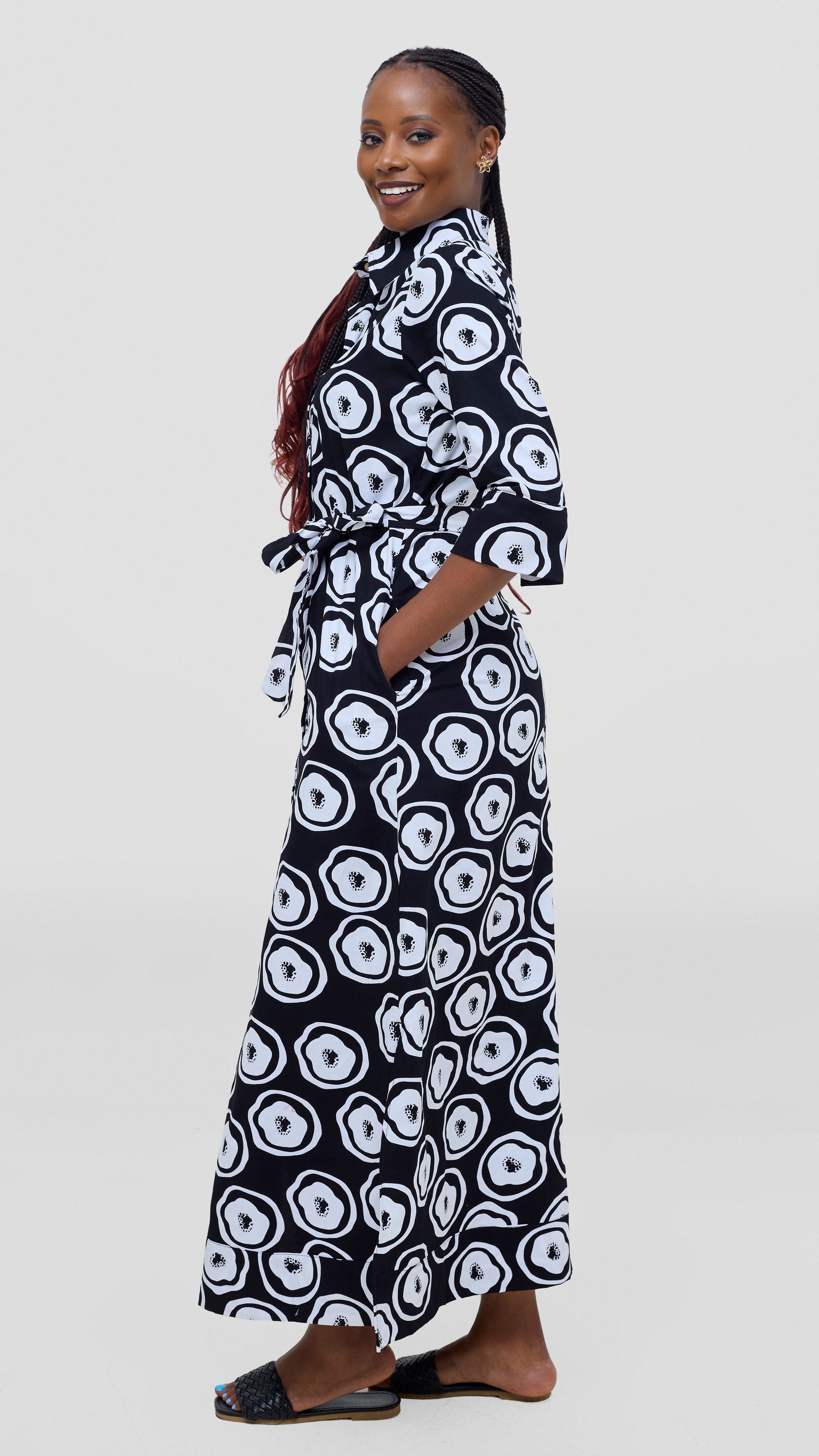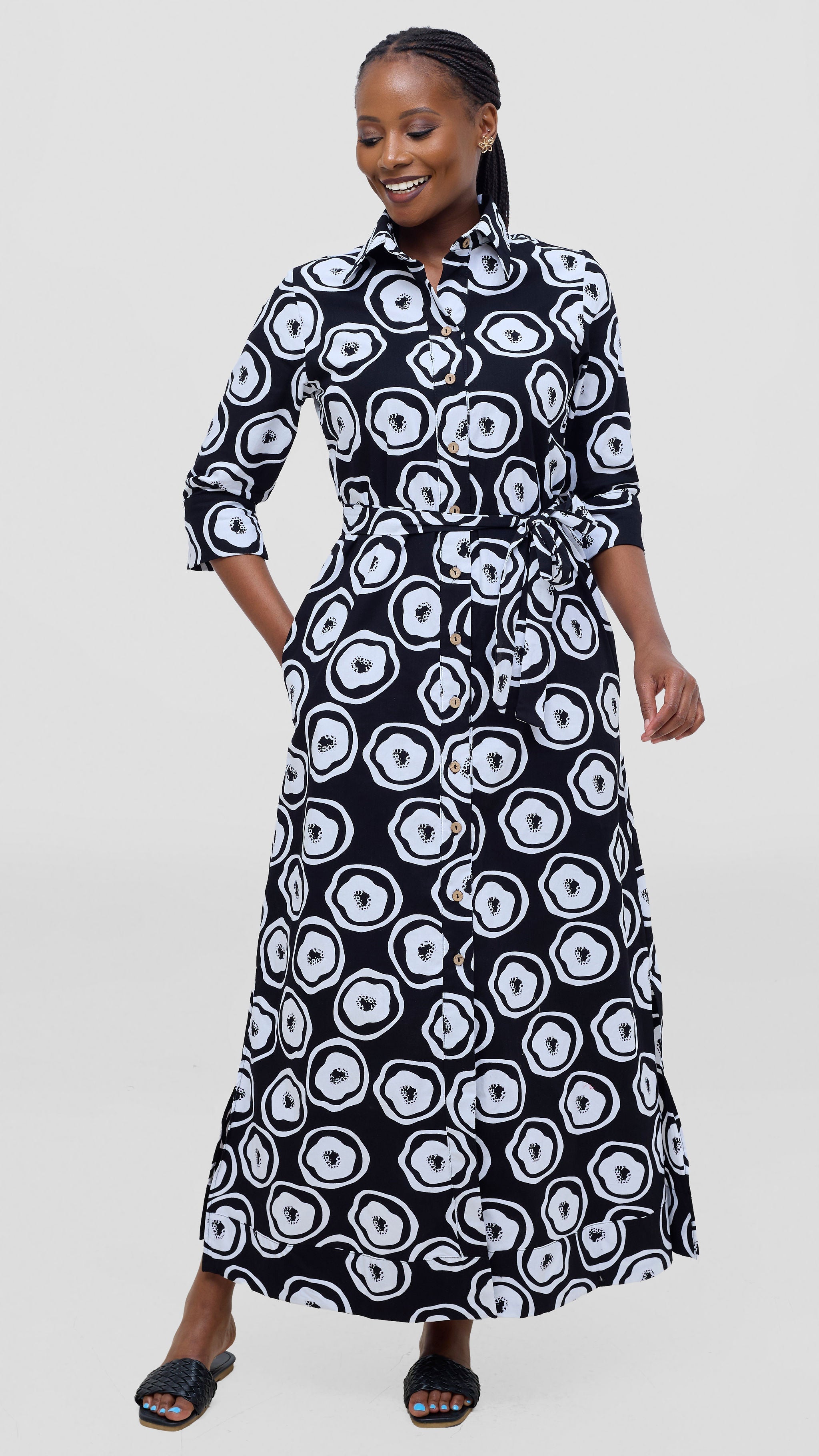 Embrace timeless elegance with this exquisite 3/4 sleeve kitenge maxi dress. The striking white and black Naji print celebrates authentic African craftsmanship while the relaxed, flowing cut ensures comfort throughout your day. Perfect for work, weekend gatherings, or special moments, this versatile piece transitions effortlessly from morning to evening. The three-quarter sleeves provide just the right balance of coverage and breathability, making it ideal for Kenya's warm climate. Invest in a dress that honors tradition while keeping you looking polished and put-together, no matter where life takes you.
